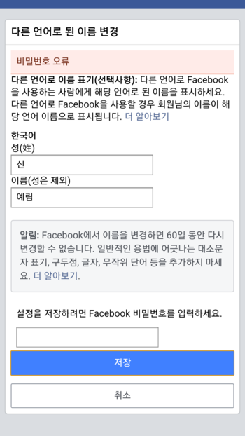 다른 언어로 된 이름 변경