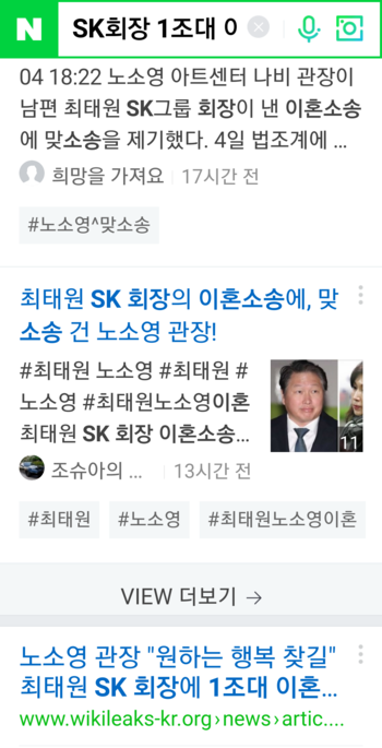 SK회장 1조대 이혼소송 : 네이버 통합검색