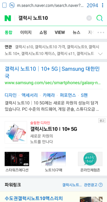 갤럭시 노트10 : 네이버 통합검색