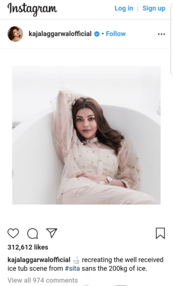 Kajal Aggarwal on Instagram: “???? recreating the well received ice tub scene from #sita sans the 200kg of ice.”