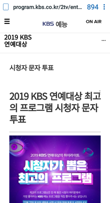 2019 KBS 연예대상 > 시청자 문자 투표 | 디지털 KBS