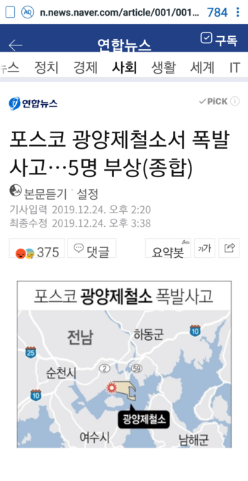 포스코 광양제철소서 폭발사고…5명 부상(종합)