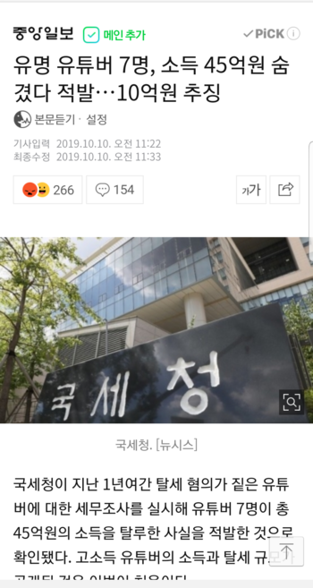 유명 유튜버 7명, 소득 45억원 숨겼다 적발…10억원 추징