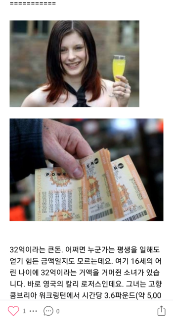 16살에 32억 복권 당첨된 소녀는 지금 이렇게 지냅니다. 영국소녀복권당첨인생이야기 : 네이버 블로그