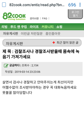 검찰조사나 경찰조사받을때 몸속에 녹음기 가져가세요 - 커뮤니티 - 자유게시판 ::: 알찬살림 요리정보가득한 82cook.com