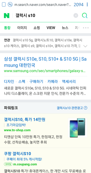 갤럭시 s10 : 네이버 통합검색