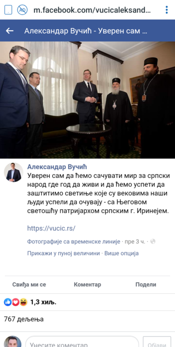 Александар Вучић - Уверен сам да ћемо сачувати мир за српски народ где год да живи и да ћемо успети да заштитимо светиње које су вековима наши људи успели да очувају - са Његовом светошћу патријархом српским г. Иринејем. https://vucic.rs/ | Фејсбук