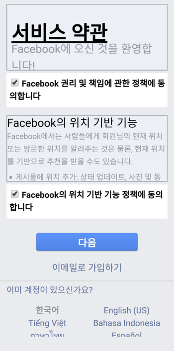 Facebook 가입하기