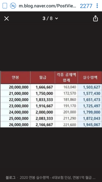 2020 연봉 실수령액 - 4대보험 인상, 연봉1억 월급 계산 등 : 네이버 블로그