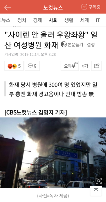 "사이렌 안 울려 우왕좌왕" 일산 여성병원 화재