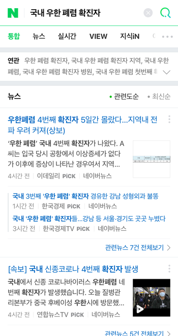 국내 우한 폐렴 확진자 : 네이버 통합검색