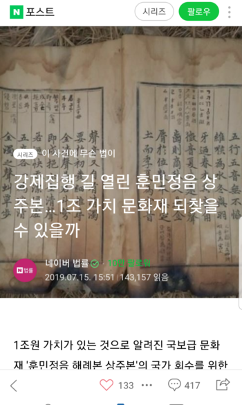 강제집행 길 열린 훈민정음 상주본…1조 가치 문화재 되찾을 수 있을까 : 네이버 포스트