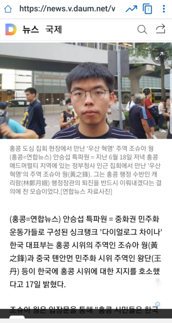 "오늘 홍콩은 39년 전 광주"..조슈아 웡 등 한국에 지지 호소 | 다음 뉴스