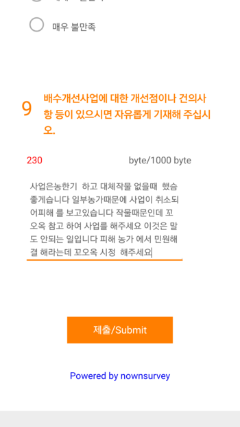 배수개선사업 수혜자 만족도 조사 - [나우앤서베이 설문 응답창]