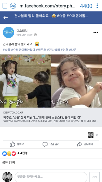 건나블리 빨리 돌아와요...???? #슈돌 #슈퍼맨이돌아왔다 #박주호 #건나블리 #건후 #나은