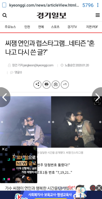 씨잼 연인과 럽스타그램…네티즌 "혼나고 다시 쓴 글?" - 경기일보