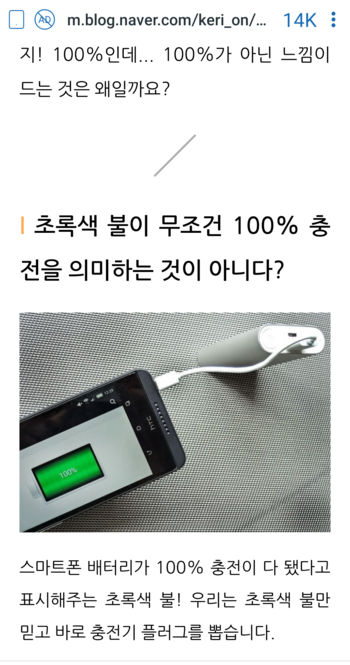 100% 충전된 스마트폰, 계속 꽂아 두는 것이 좋을까? : 네이버 블로그