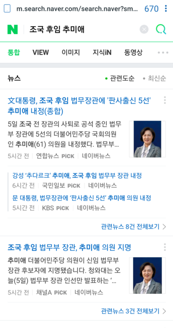 조국 후임 추미애 : 네이버 통합검색