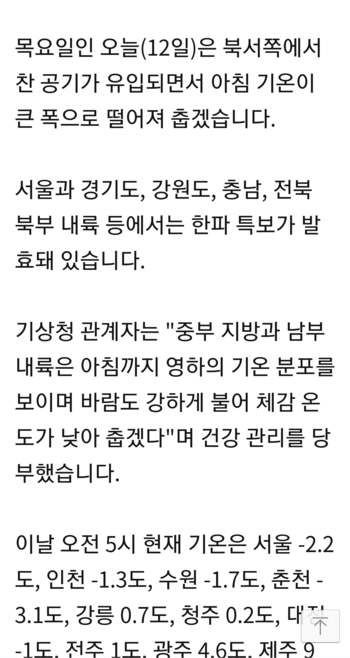 오늘의 날씨, 아침기온 '뚝'…미세먼지는 '보통'~'좋음'