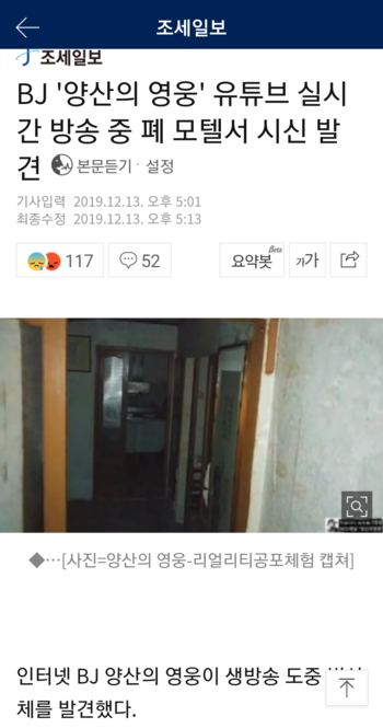BJ '양산의 영웅' 유튜브 실시간 방송 중 폐 모텔서 시신 발견