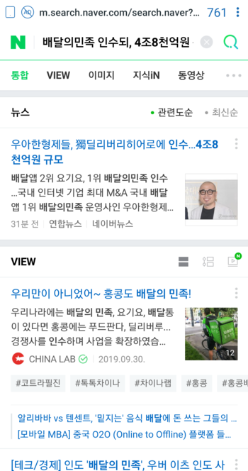 배달의민족 인수되, 4조8천억원 규모 : 네이버 통합검색