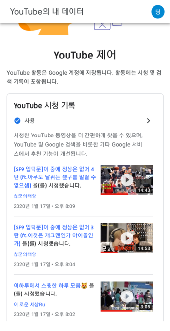 YouTube의 내 데이터