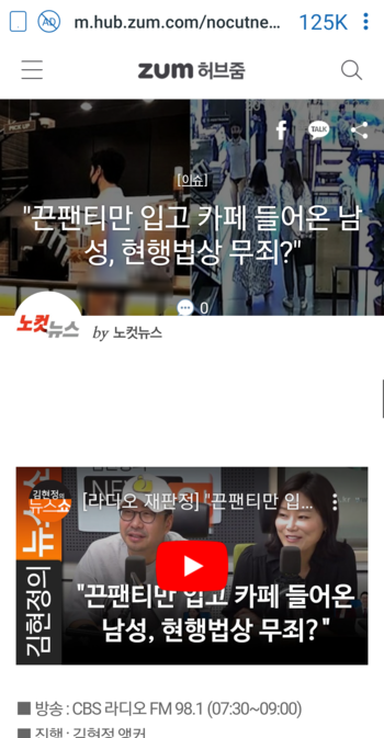 "끈팬티만 입고 카페 들어온 남성, 현행법상 무죄?" : 허브줌