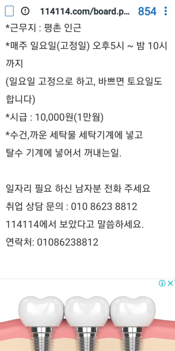 사우나 세탁일 일요일 오후 일당 할 남자 모집 합니다 - 114114