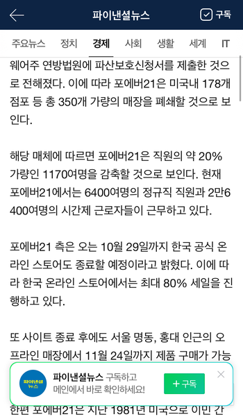 '포에버21' 파산 신청.. 韓 온라인 스토어 29일 종료