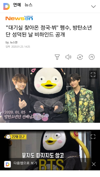 "대기실 찾아온 정국·뷔" 펭수, 방탄소년단 성덕된 날 비하인드 공개 | 다음연예