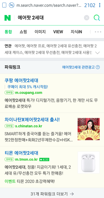에어팟 2세대 : 네이버 통합검색