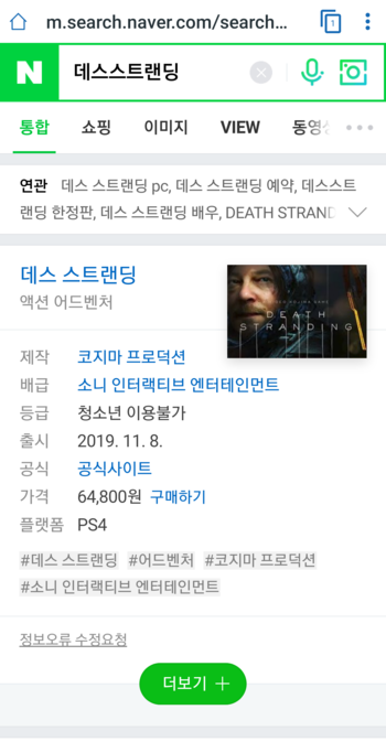 데스스트랜딩 : 네이버 통합검색