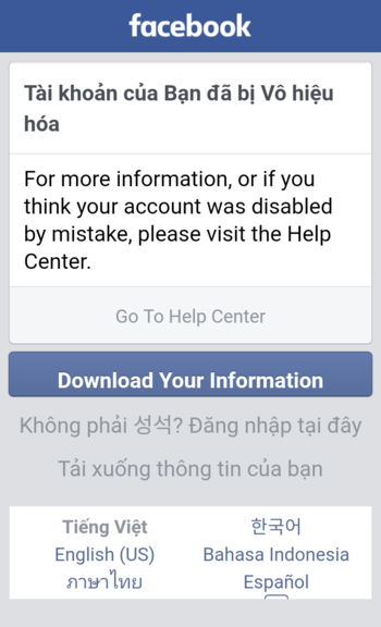 Tài khoản của Bạn đã bị Vô hiệu hóa