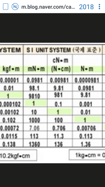 토크 환산표 : 네이버 블로그