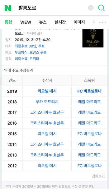 발롱도르 : 네이버 통합검색