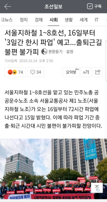 서울지하철 1~8호선, 16일부터 '3일간 한시 파업' 예고...출퇴근길 불편 불가피