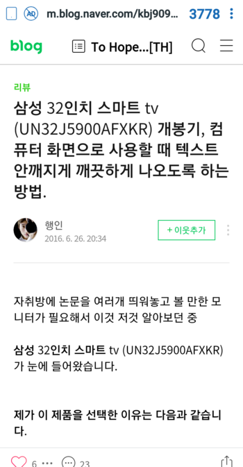 삼성 32인치 스마트 tv (UN32J5900AFXKR) 개봉기, 컴퓨터 화면으로 사용할 때 텍스트 안깨지게 깨끗하게 나오도록 하는 방법. : 네이버 블로그