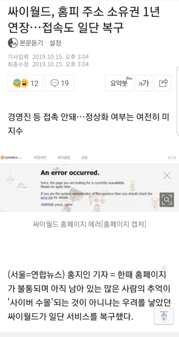 싸이월드, 홈피 주소 소유권 1년 연장…접속도 일단 복구
