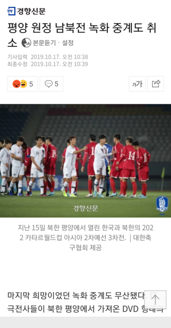 평양 원정 남북전 녹화 중계도 취소 :: 네이버스포츠