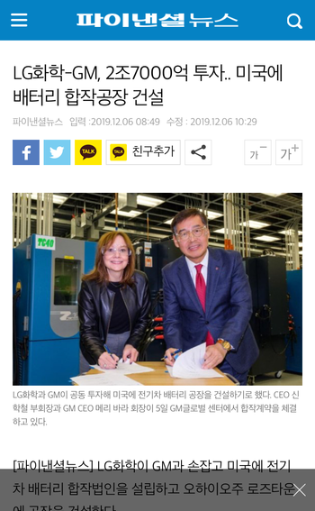 LG화학-GM, 2조7000억 투자.. 미국에 배터리 합작공장 건설 - 파이낸셜뉴스
