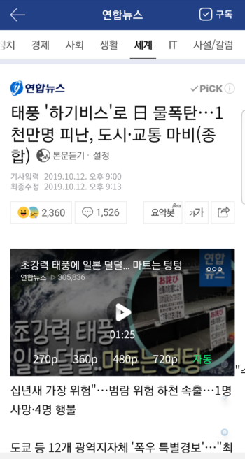 태풍 '하기비스'로 日 물폭탄…1천만명 피난, 도시·교통 마비(종합)