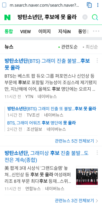 방탄소년단, 후보에 못 올라 : 네이버 통합검색