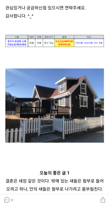 충주 전원주택 주말농장 펜션 별장 아리마을 서울에서 90km, 1시간 거리 월세 2,000만원/30만원 : 네이버 블로그