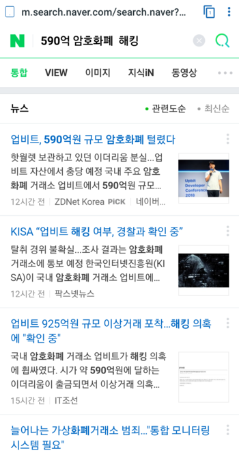 590억 암호화폐 해킹 : 네이버 통합검색