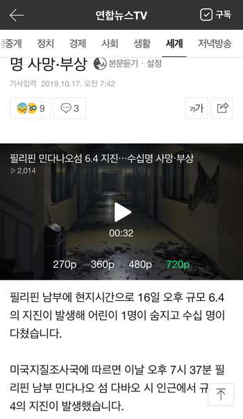 필리핀 민다나오섬 6.4 지진…수십명 사망·부상