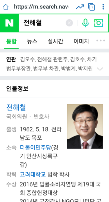 전해철 : 네이버 통합검색