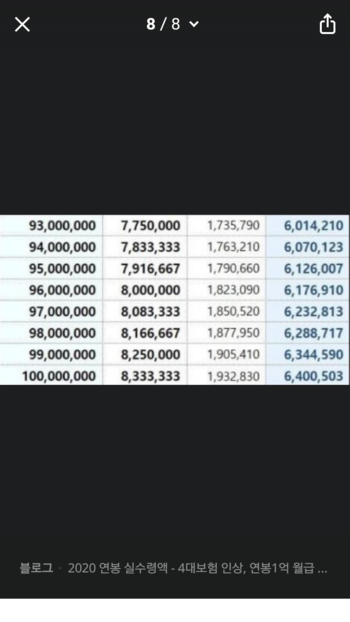 2020 연봉 실수령액 - 4대보험 인상, 연봉1억 월급 계산 등 : 네이버 블로그