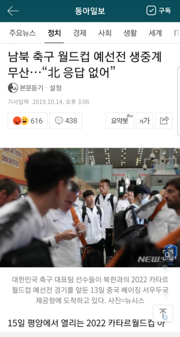남북 축구 월드컵 예선전 생중계 무산…“北 응답 없어”