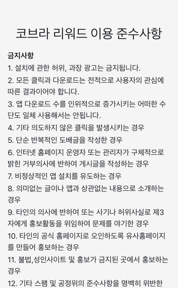 코브라 브라우저 : 코브라 리워드 이용 준수사항